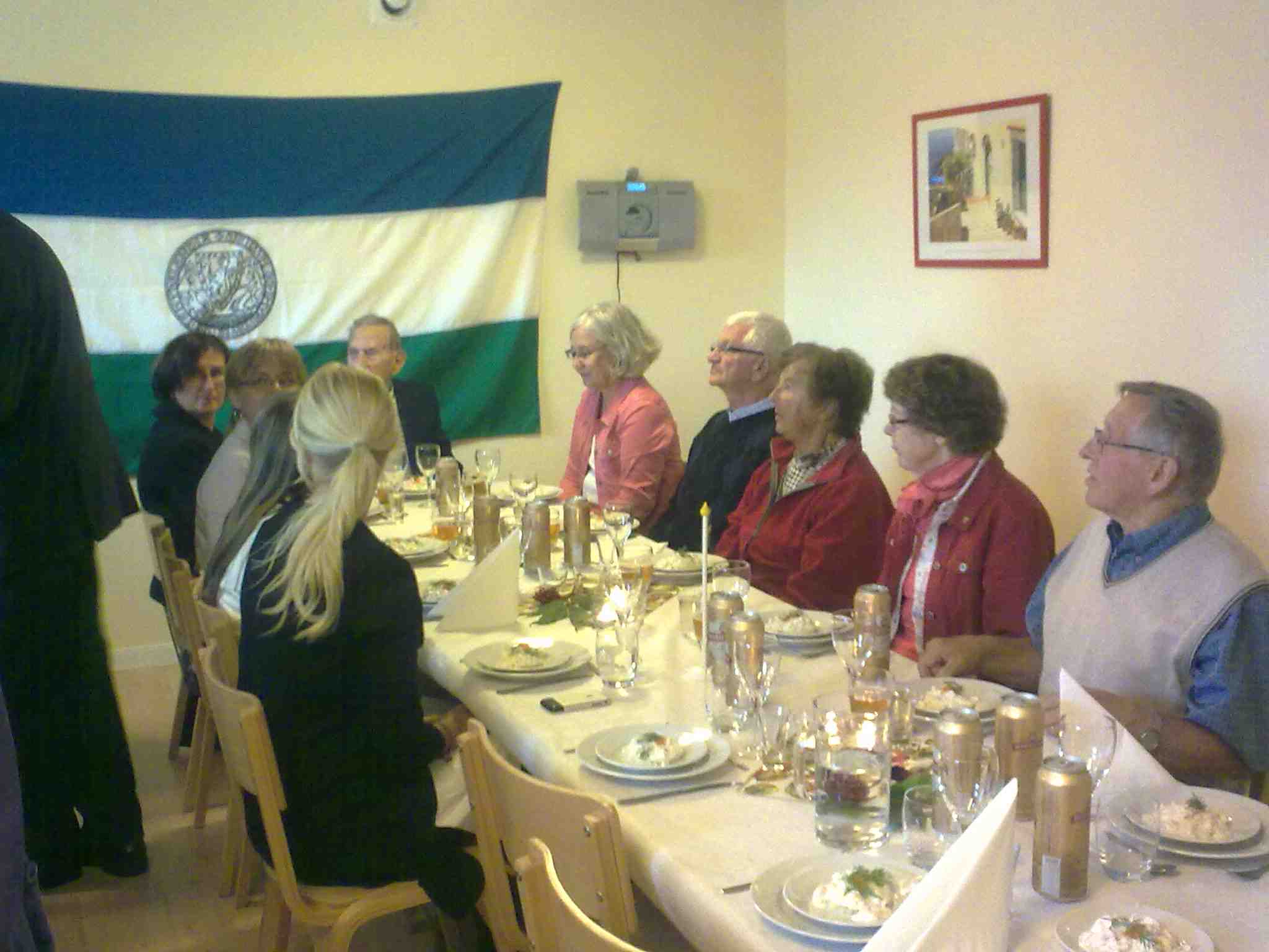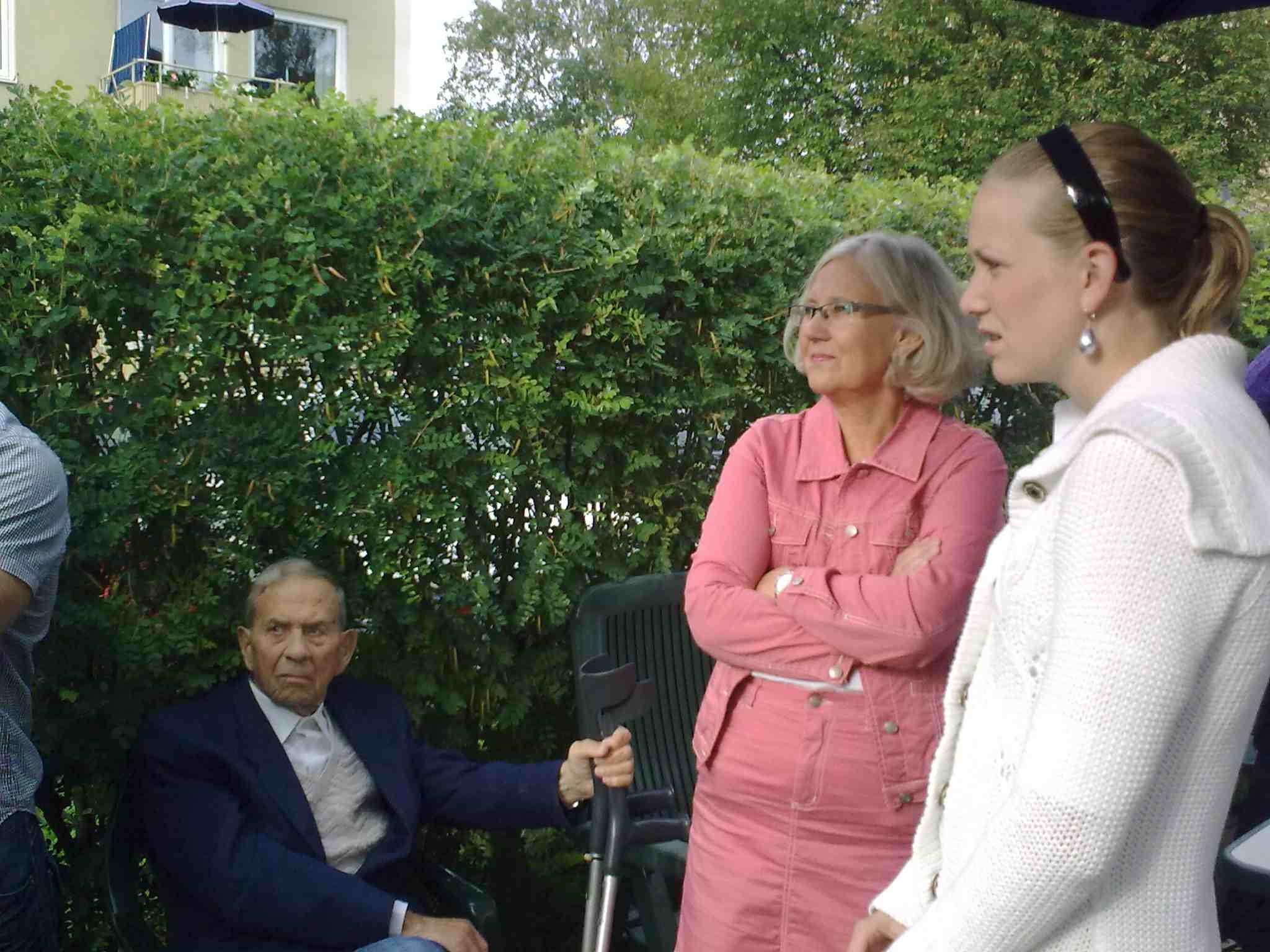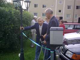 Vår äldste boende, Sven Aldevärn, klipper bandet, assisterad av ordf Bo Oscarsson.
